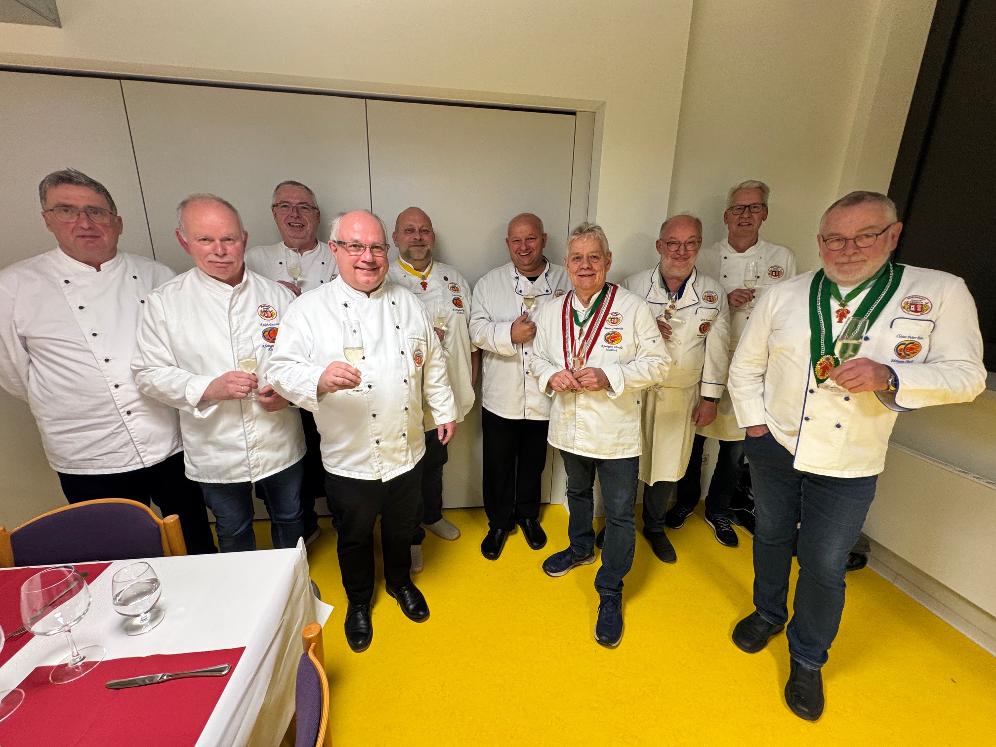 Der bislang aktive Vorstand wurde einstimmig, mit den üblichen Enthaltungen, wiedergewählt und die (vorläufigen) Termine für 2026 ausgearbeitet. Danach konnte es ans „Kochen“ gehen, wobei die Kochbrüder: Peter „Gänsebrüste“, Harald „Rotkohl“ Frank „Kartoffelknödel“ und Lars „Lebkuchenparfait“ vorbereitet hatten. Diese Menükomponenten wurden dann von allen Kochbrüdern fertig zubereitet und eine schöne Tafel gedeckt.