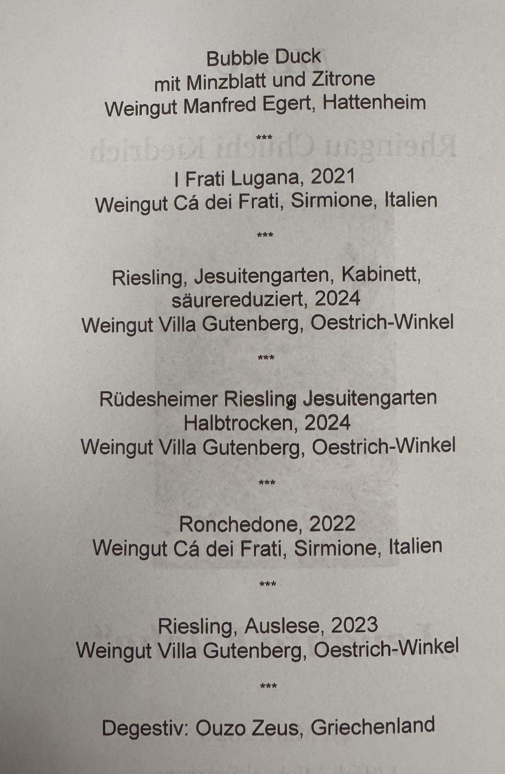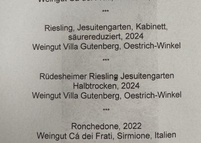 Vorspeise: Raviolo mit Fleischfüllung und Salbeibutter begleitet von einem 2024er Erbacher Steinmorgen / Weingut Speicher-Schuth