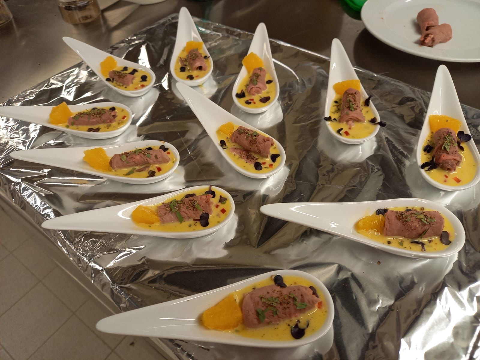 Für seine Prüfung hatte er ein 5-Gang Menü ausgearbeitet, dass sich durchaus sehen lassen konnte. Für dessen Umsetzung erforderte es Kenntnisse im Hinblick auf regionale und saisonale Produkte, verschiedene Garmethoden und deren Einsatzmöglichkeiten und anderen Dingen die zum Herstellen eines schmackhaften und ansprechenden Menüs notwendig sind.