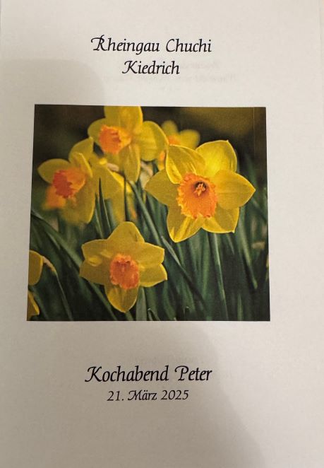 Dies ist unser letzter Kochabend/Nachmittag in diesem Jahr! Wir werden an diesem Tag unsere „Jahresversammlung“ durchführen und die Termine für das Jahr 2026 festlegen. Ich bitte um die Teilnahme aller denn es werden an diesem Tag auch „Neuwahlen“ (Chuchileiter, Stellvertreter und Almosenier).